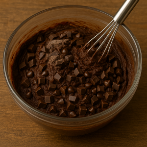 - Gently fold in the dark chocolate chunks (and chocolate chips if using).